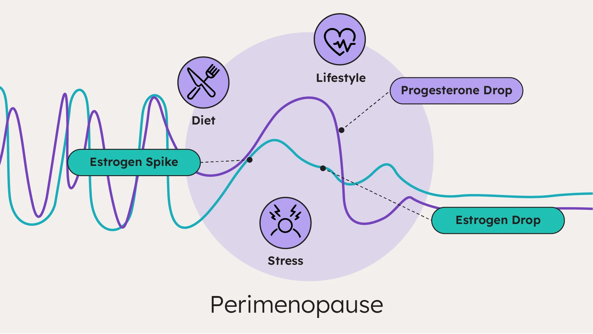 Perimenopause is the transition phase before menopause. It usually begins in the late 30s or 40s and can last anywhere from 4 to 8 years. During this time, the ovaries gradually produce less estrogen and progesterone.